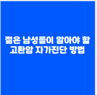 고환암은 조기 발견이 매우 중요하므로, 특히 20~30대 남성은 정기적으로 자가진단을 시행하는 것이 좋습니다.